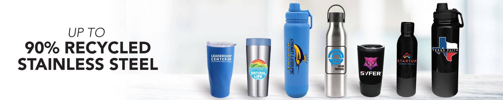 Up to 90 % recycled 304 stainless steel outer.